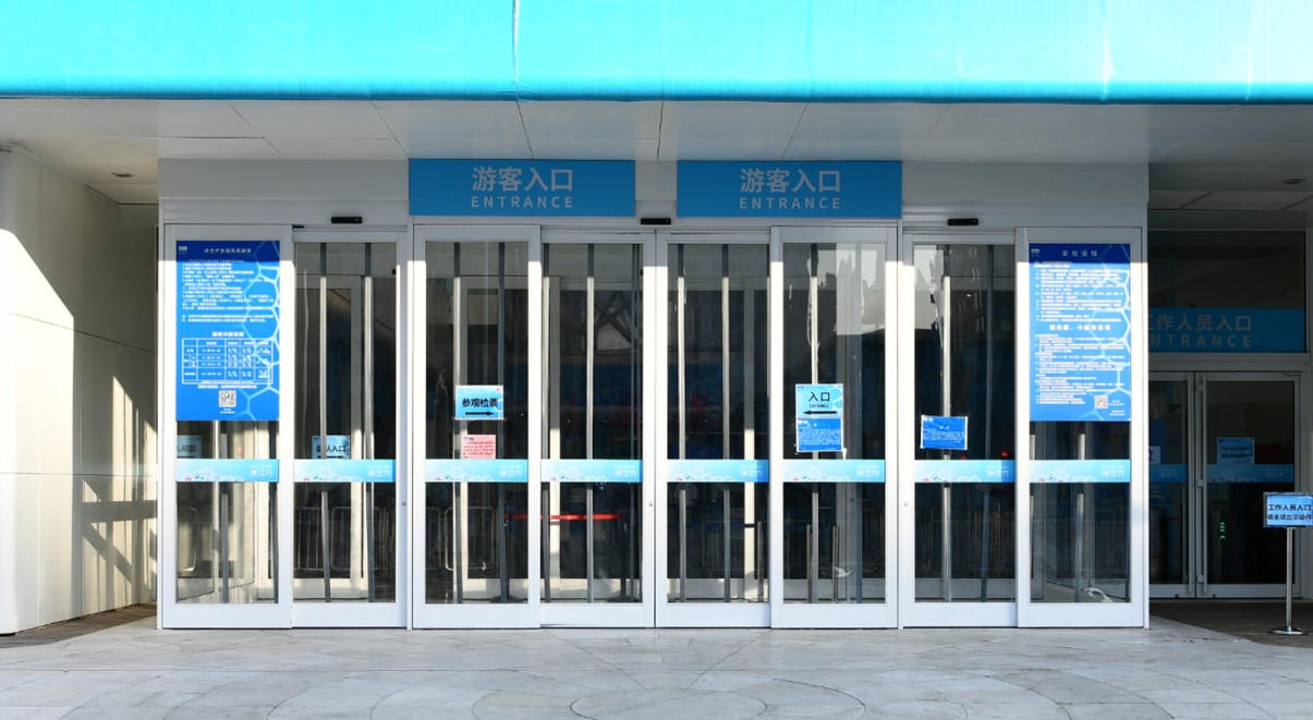 【“冰立方”所有外立面入口采用GMT平移式紧急疏散自动门】